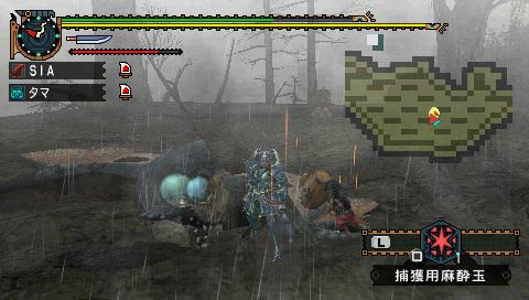 弱ったと早とちりしてシビレ罠にはめて麻酔玉を投げるも捕獲失敗。